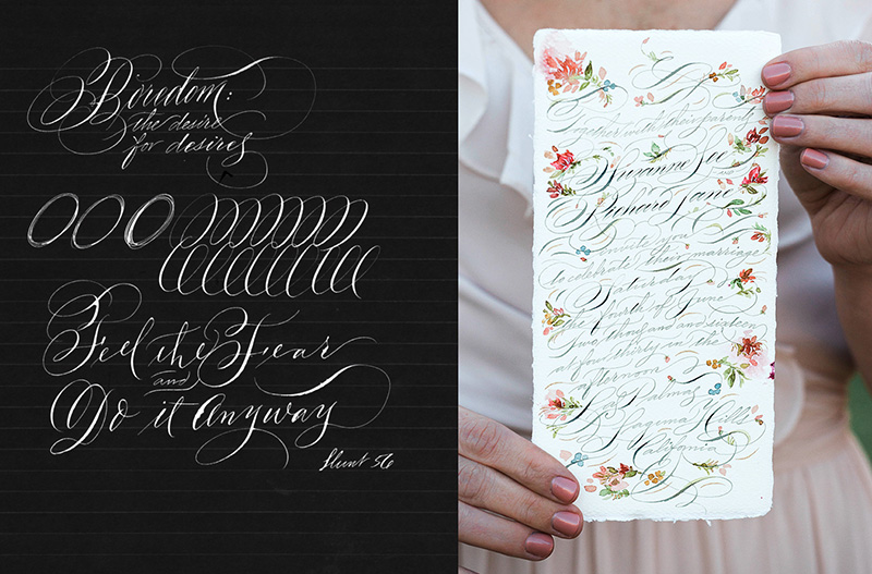 If you're a beginner and on a budget, this will work great. I also recommend adding a few Nikko G and Zebra nibs to your cart, those are comparable to the Hunt 56, are very popular, and work just as well if not better! If you look below you’ll see three examples of art I’ve done with the Hunt 56. It works for simple plain lettering, and I also used it for these floral invitations. The portrait of the woman was also done using watercolor, and I wanted to interlace some quotes around her. If I used a sharp nib (such as the Principal or Gillott 303) then it would have snagged on the soft watercolor paper, but the Hunt 56 (or Zebra/Nikko G) glides on just fine, drama-free.